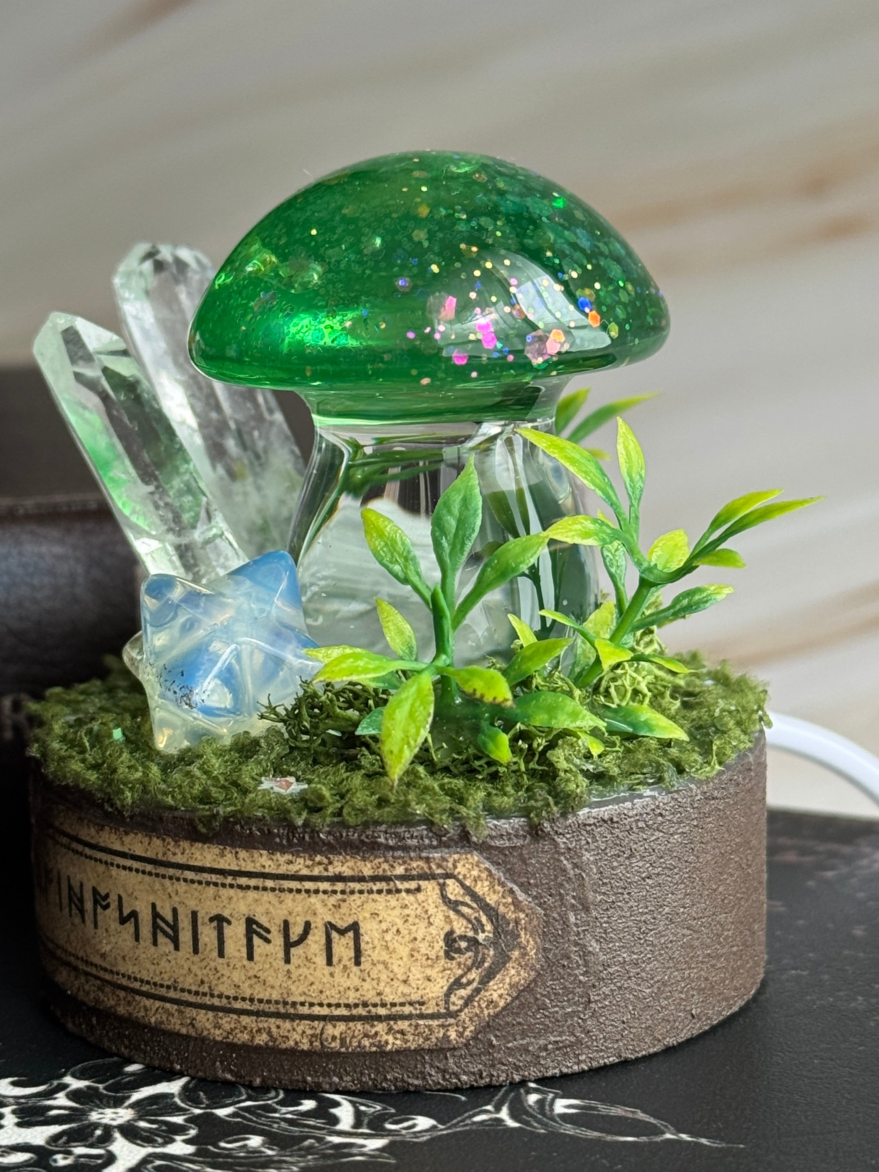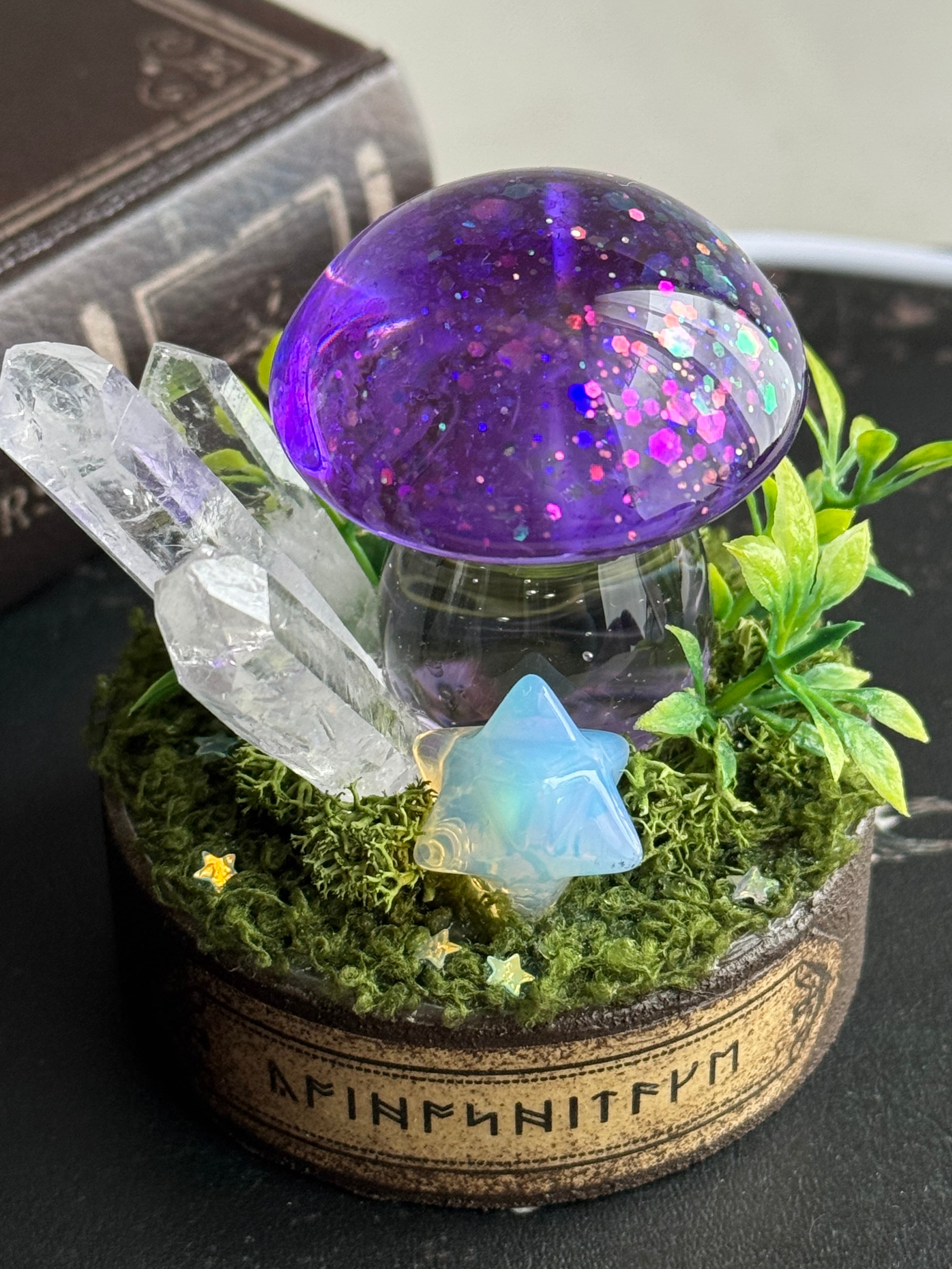 光る水晶を見つめていると非日常を感じることの出来る癒しアイテムです。