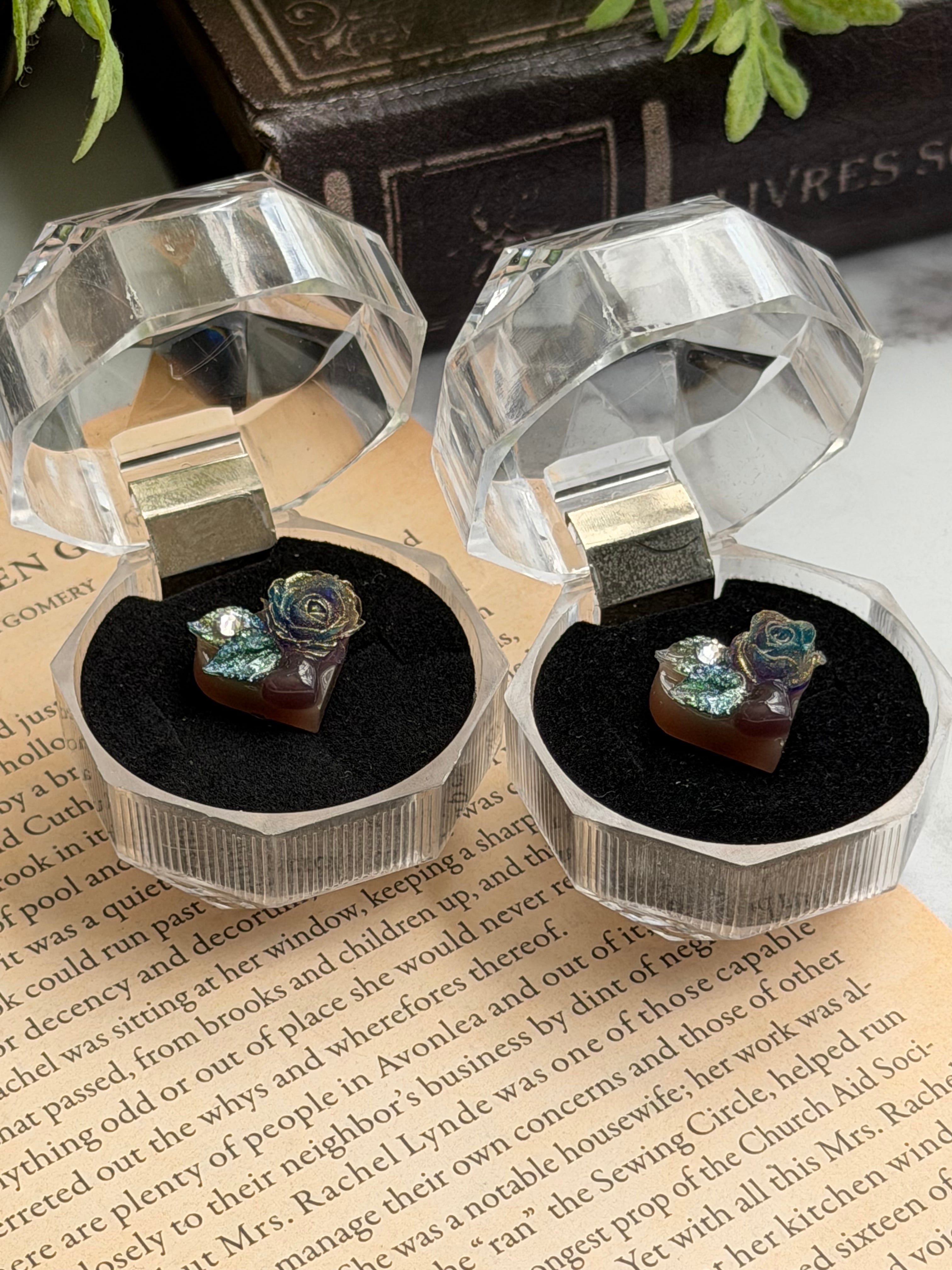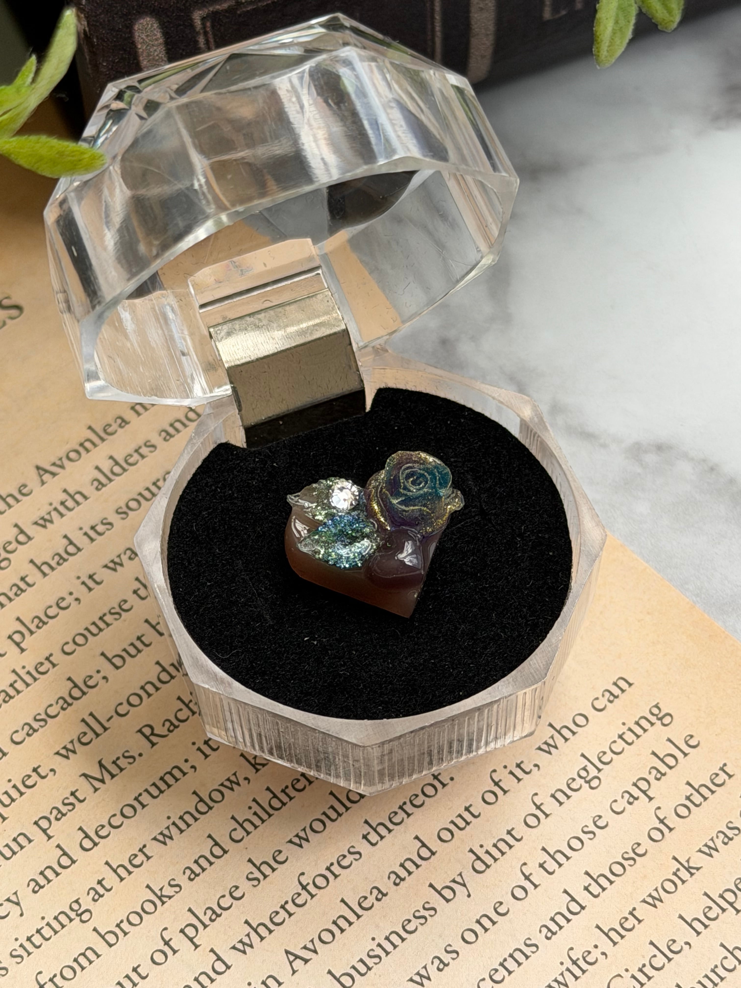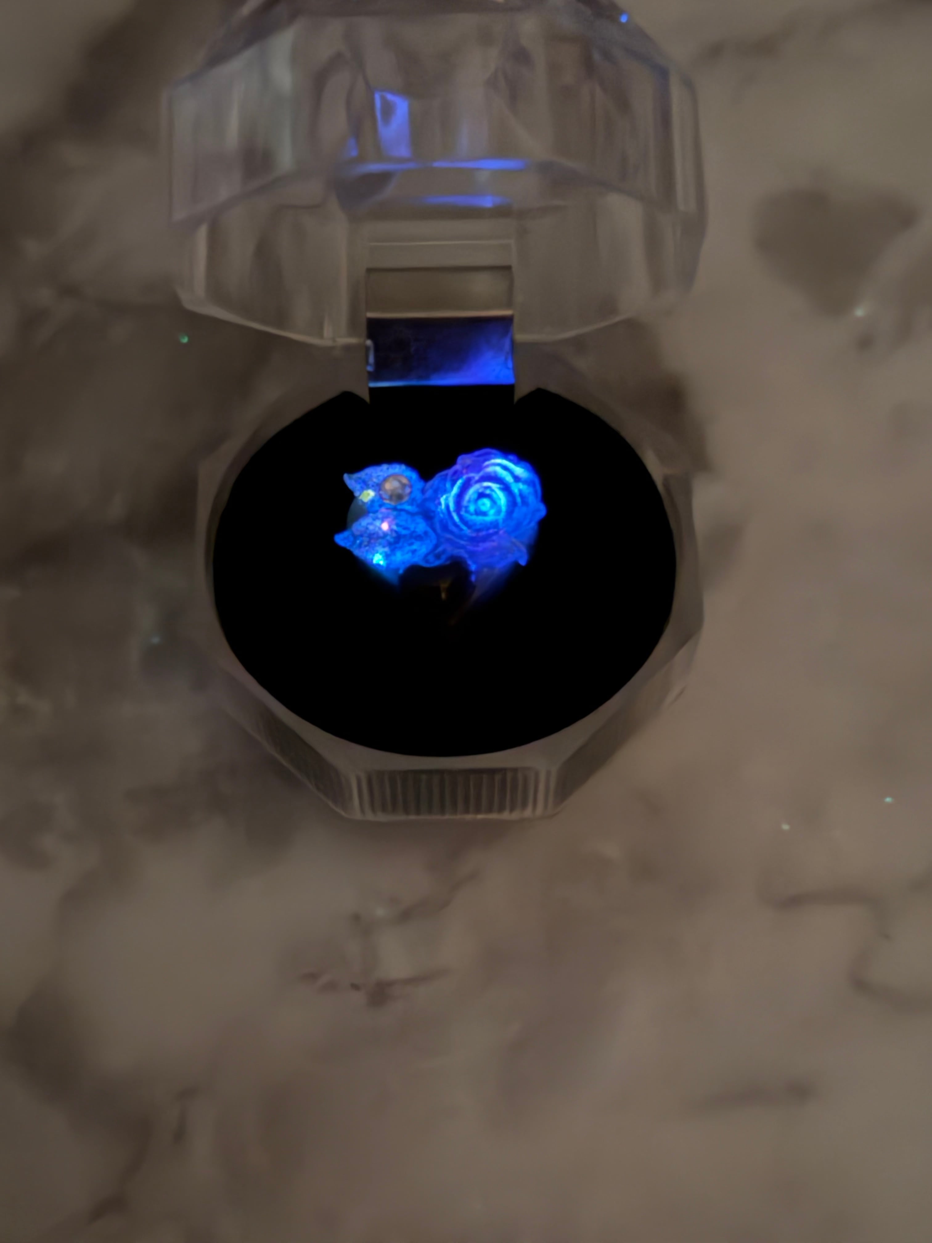 もちろん魔法のスタイルも忘れずに、薔薇と葉は蓄光素材なので光を当てると暗いところで仄かに光ります。