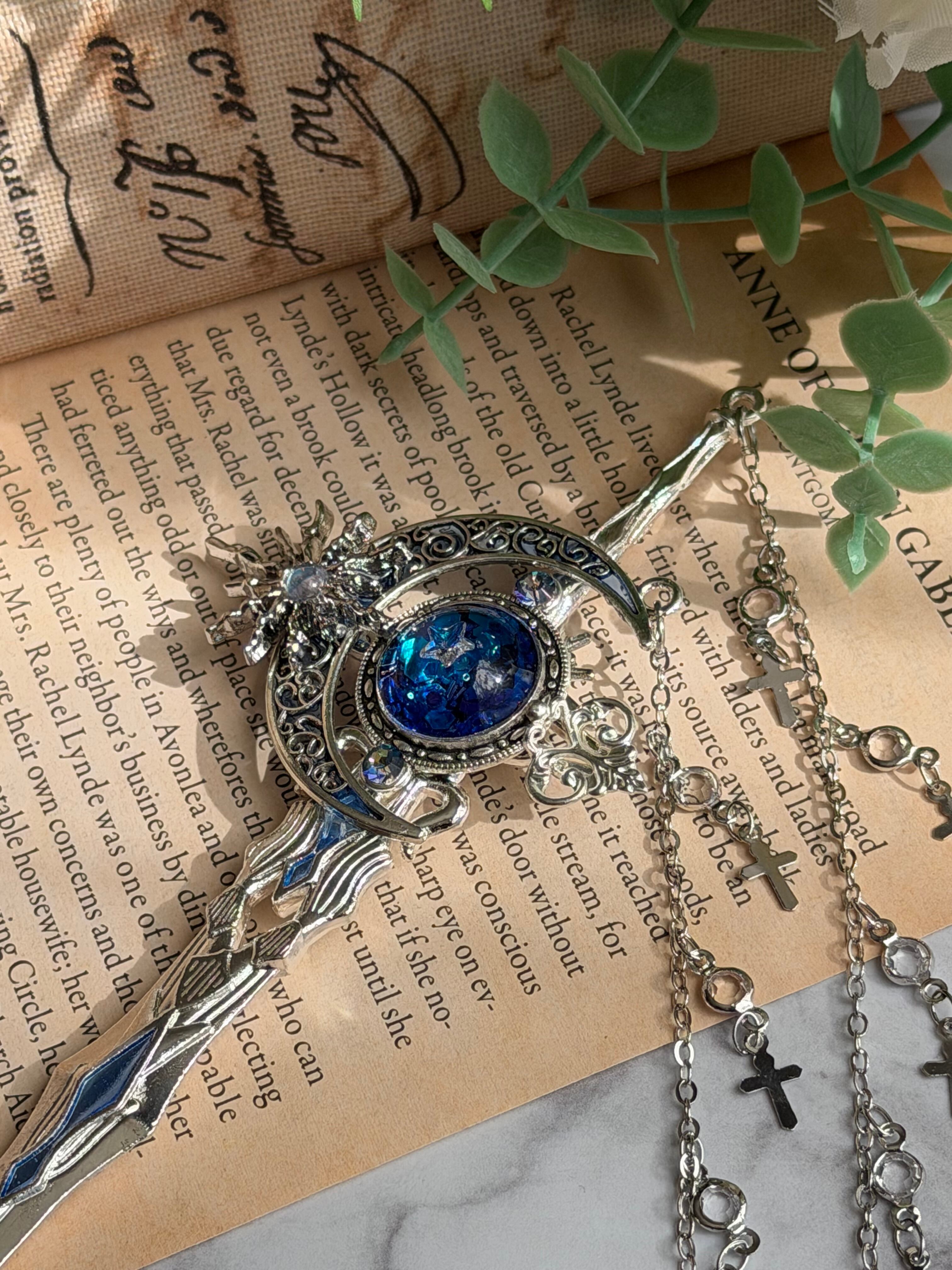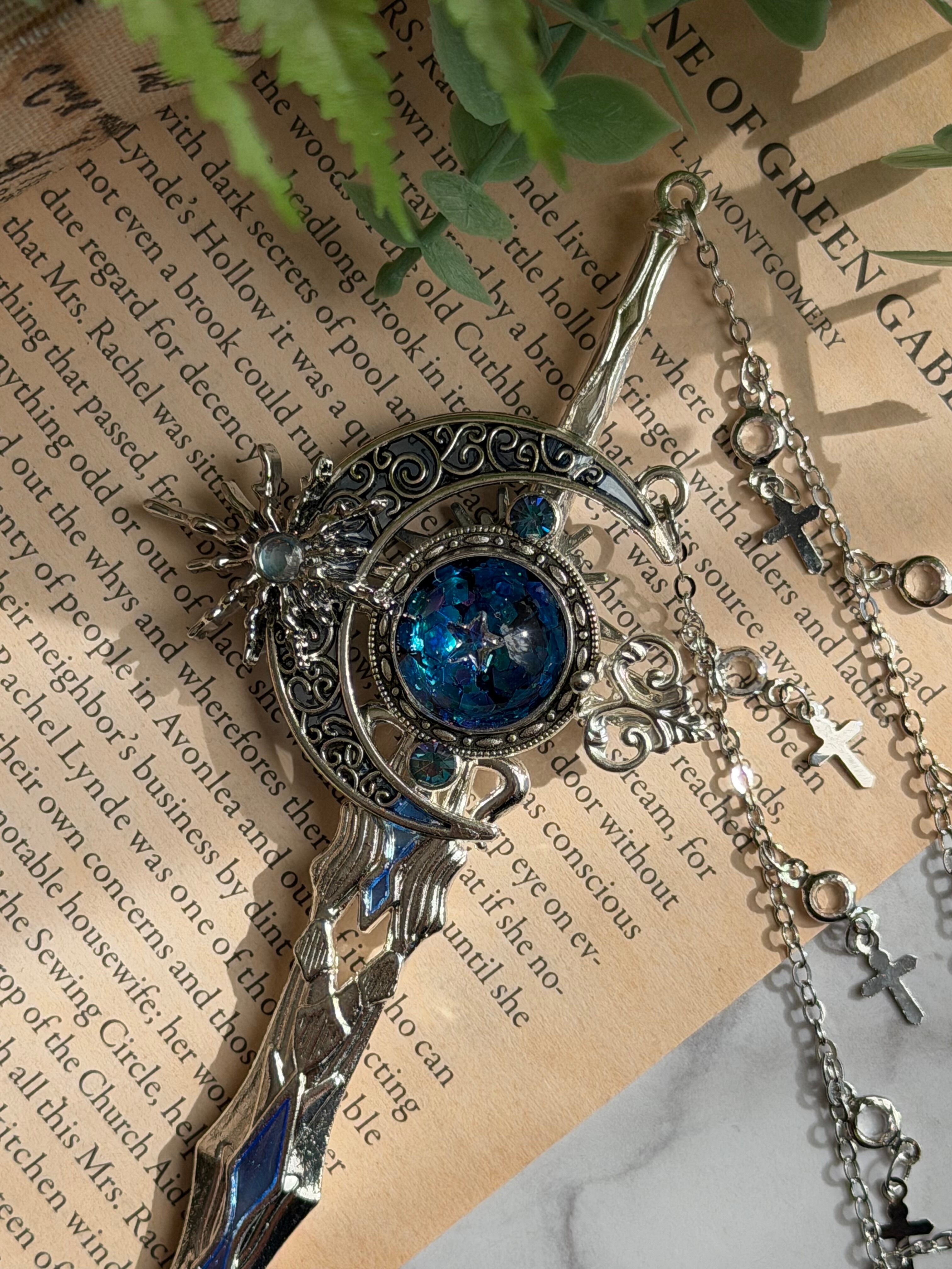 この簪は、まるで古の神話に登場する剣のようなデザインで、装飾品としての美しさと、ファンタジーな夢を運んでくれます。月の光を受けたように輝く素材が、その魅力を一層引き立て、あなたの髪を優雅に彩ります。どんなシーンにもフィットし、特別な瞬間を演出してくれるでしょう。