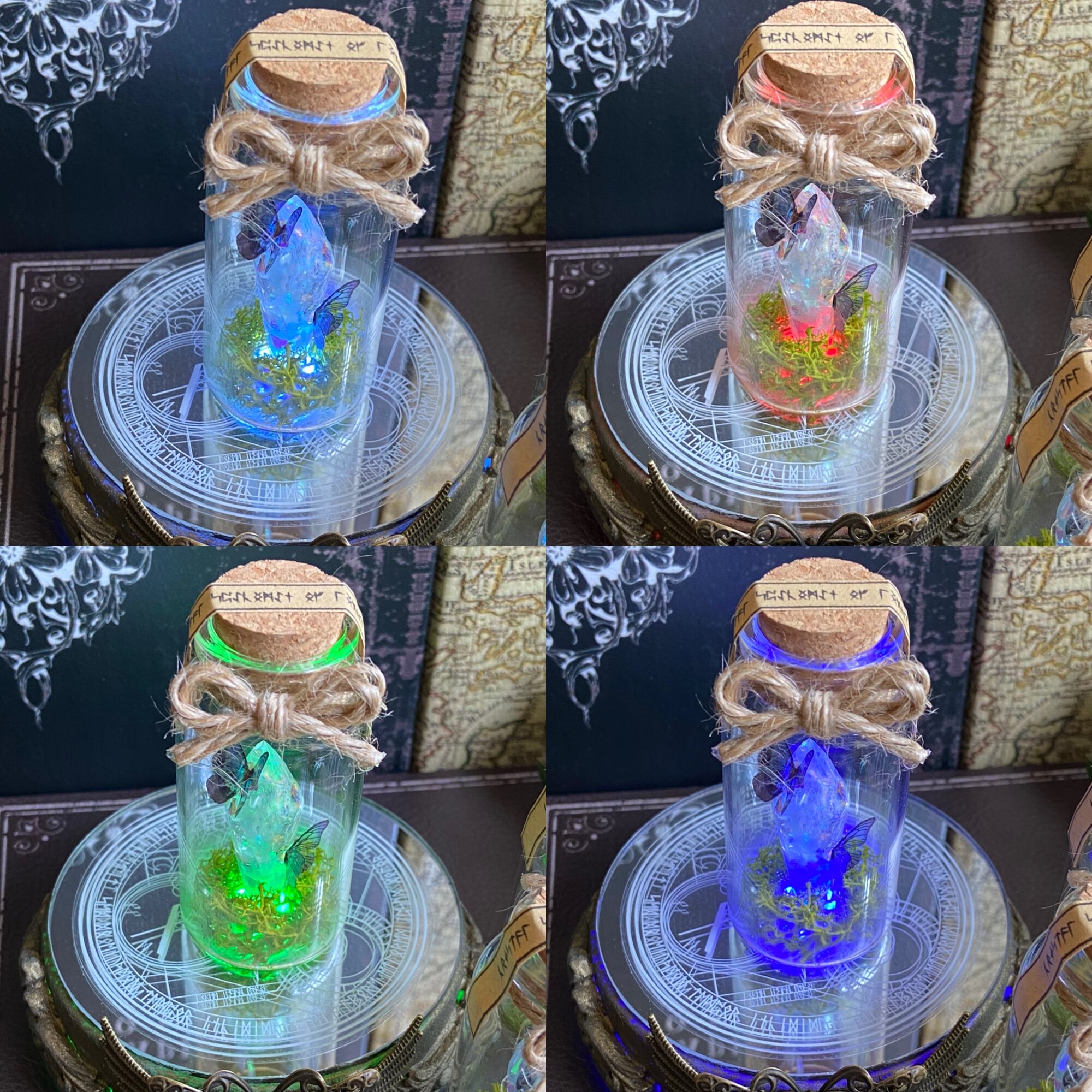 レインボーのライトで表情を変えるレジン鉱石をお楽しみください。